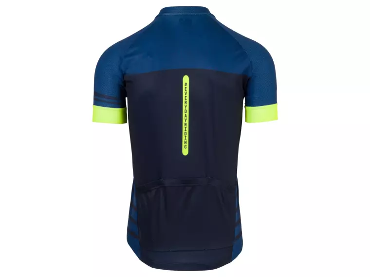 - Op de rug heeft het shirt drie achterzakken waar je een jasje, etenswaren of een reservebandje in kwijt kunt.