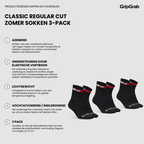 Specificaties GripGrab 3 Pack Regular Cut Sokken